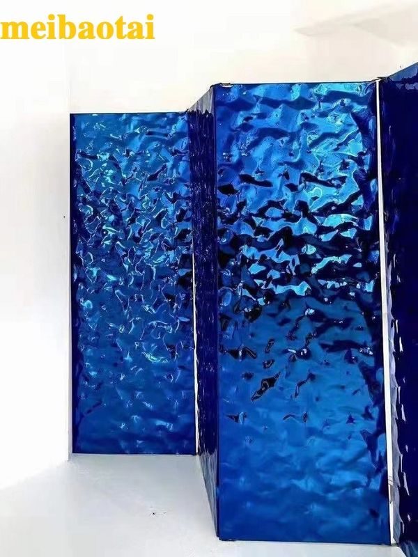 Η επιφάνεια του συνηθισμένου ζαρωμένου μέταλλο φύλλου είναι επίπεδη, και η διαθλασμένη εικόνα είναι επίσης ομοιόμορφη και ομοιόμορφη. Αλλά εάν το μεταλλικό πιάτο κτυπιέται με ένα σφυρί, η επιφάνεια θα γίνει ανώμαλη, και η διαθλασμένη εικόνα μπορεί να παρουσιάσει μια οπτική τρισδιάστατη επίδραση. Μέσω των διαφορετικών μεθόδων κρούσης, το φύλλο κυματισμών νερού μετάλλων μπορεί να διαιρεθεί σε τρεις κατηγορίες: οι μεγάλοι κυματισμοί νερού, μικρό νερό κυματίζουν, και σχέδια κλίμακας νερού. Οι μέθοδοι επεξεργασίας επιφάνειας κυματισμών νερού περιλαμβάνουν φωτεινό, βουρτσισμένος, χρυσός, αυξήθηκαν χρυσό, μαύρο τιτάνιο, χρυσός σαμπάνιας, και μπλε σαπφείρου.